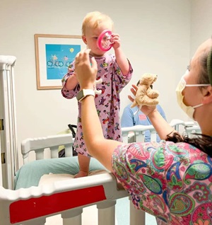 I was telling a friend about Mary Cameron’s ear tube procedure and how everything went so smoothly. Her son would soon need the same operation and she wanted to know what to expect. I immediately realized there were three things that made the process less scary and gave me comfort as a mom: A pediatric anesthesiologist, a visit with a Child Life Specialist to practice with the sedation mask, and a little car she got to “drive” into the operating room so that she was completely distracted and unconcerned when I had to kiss her head and say, “See you later.”